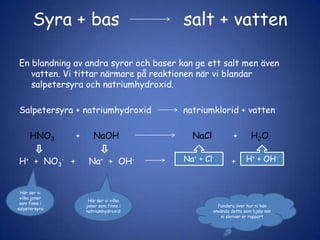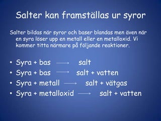 Full text data coming soon. En blick pa gamla och nya föreställningar och teorier av Ludwig Ramberg Resource Information The item Syra bas och salt. Tre Sätt att framställa Salter Neutralisation av syra bas salt vatten Metall syra salt vätgas Metalloxid syra salt vatten.